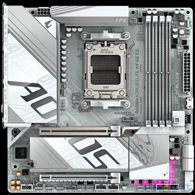 | GIGABYTE B850M AORUS ELITE WIFI6E ICE AM5 mATX osnovna plošča - AMD B850, 4xDDR5, 2xM.2, 4xSATA, 2.5Gb LAN, WiFi 6E, BT, 1xDP, 1xHDMI (spredaj) |