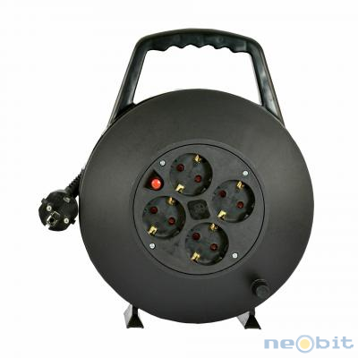Tehnične lastnosti: 4x Schuko vtičnica Vgrajena termalna varovalka za zaščito pred pregrevanjem Ročaj za prenašanje in navijanje kabla nazaj na boben Kabel: H05VV-F 3G 1.50mm2 Dolžina: 10m Nazivna napetost: 250V Nazivni tok: 10A Največja dovoljena moč: 3500W Izdelek ni primeren za zunanjo uporabo!